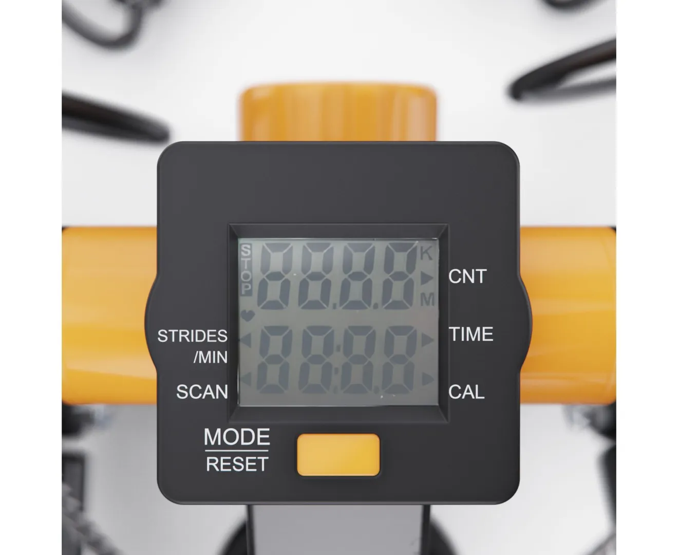 Гидравлическая система обеспечивает плавный и тихий ход. Механическая регулировка позволяет менять уровень нагрузки. Максимальный вес пользователя — 110 кг. Широкие педали 30 х 10,5 см с рельефным покрытием и компенсаторы неровностей пола делают тренировку устойчивой и безопасной.